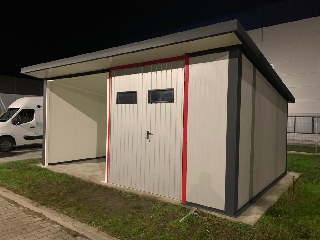 Garaże z płyty warstwowej to mocniejsze rozwiązania niż garaże z blachodachówki. Konstrukcja pozwala na pracę w zimę.